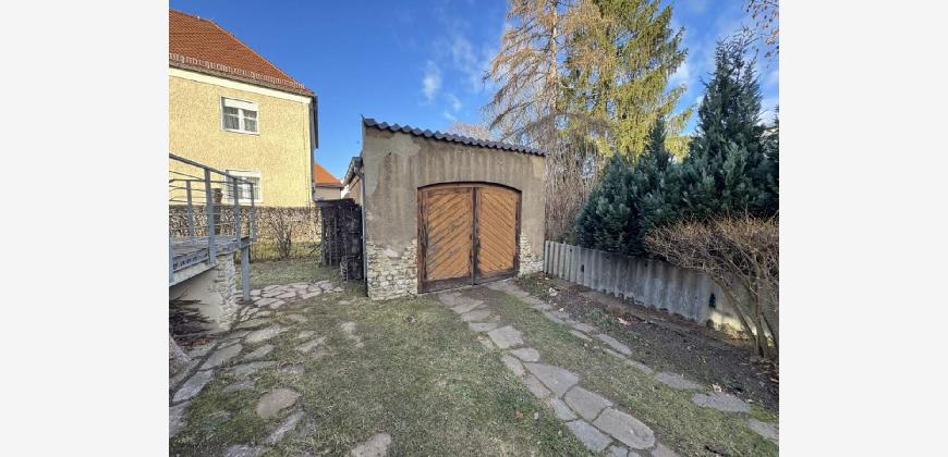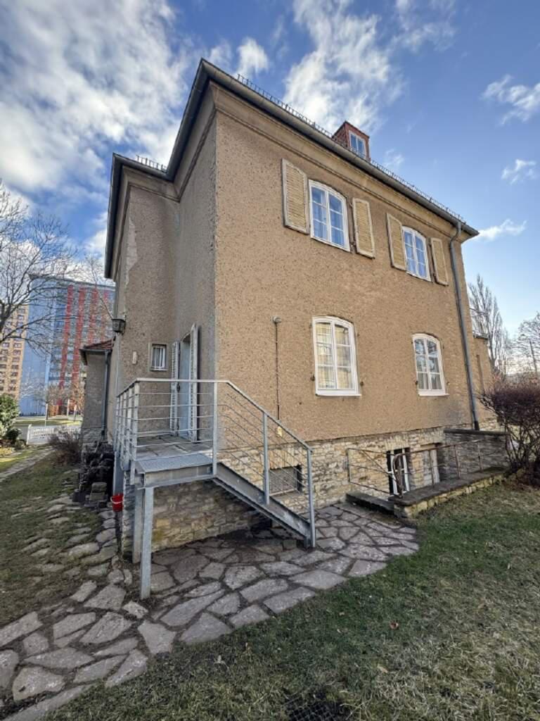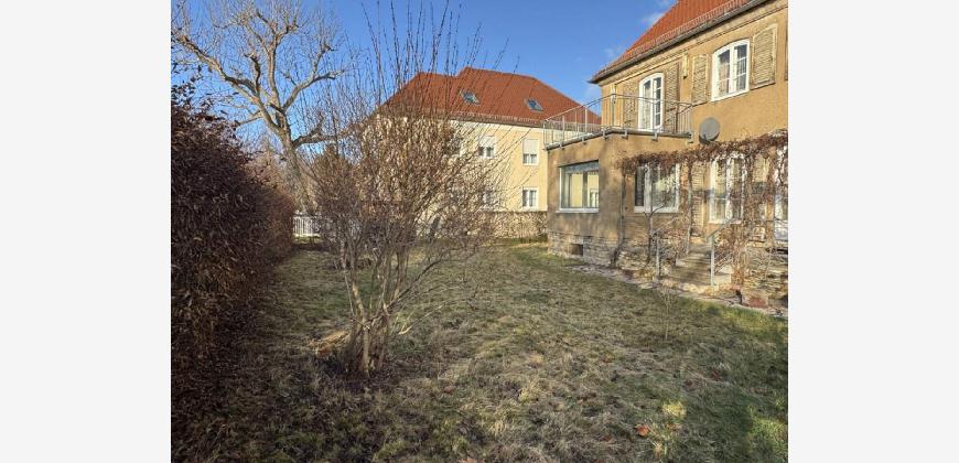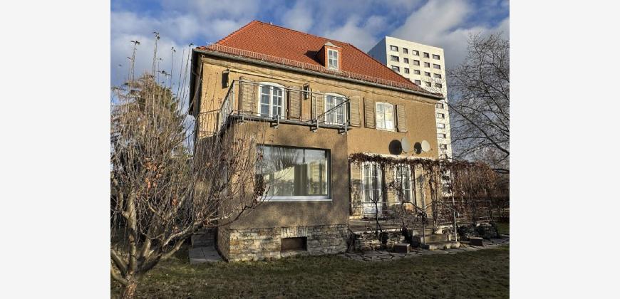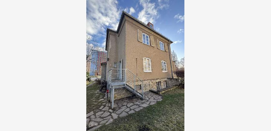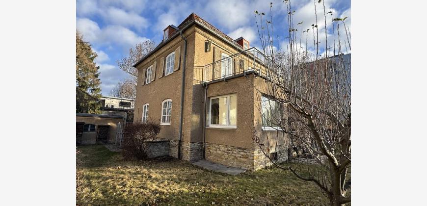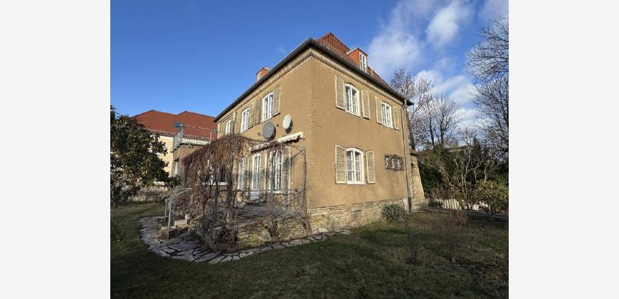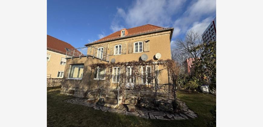 Zum Verkauf steht eine charmante, denkmalgeschützte Stadtvilla aus dem Baujahr 1938. Das zweigeschossige, vollunterkellerte Gebäude verfügt über eine großzügige Wohnfläche von etwa 180 m² und befindet sich auf einem rund 720 m² großen Grundstück, auf dem sich zudem eine Garage befindet.