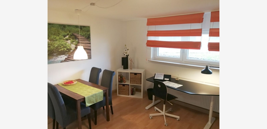 This apartment (approx. 58 sqm) consists of a large, bright living room with a fully equipped kitchenette and a dining area for 4 people, a spacious bedroom and a full bathroom with bathtub and separate shower. There are windows running the full width of the apartment overlooking the garden.You sleep on two very comfortable single beds, which can also be pushed together. In the living room there is another bed, which is used as a sofa during the day with the help of backrests.A desk in front of the window, a small armchair, sideboards, a flat screen TV (SAT TV) and very pleasant lighting complete the furnishing of the apartment. The wardrobe with enough space for your personal belongings is in the large hallway of the apartment.The kitchen is equipped with a dishwasher, an electric 4-plate ceramic hob with exhaust air, an oven, a refrigerator with freezer compartment, a microwave, as well as a kettle, toaster, coffee maker and, of course, plenty of crockery.Washing machine, iron and ironing board in the basement of the house are available to our guests free of charge.Bed linen and towels can be provided if required. The heating and hot water processing runs via a modern gas boiler.In the apartment there is free internet access via WiFi.Parking for your car can be found on our private parking lot in front of the house for a fee or on the side of the road in the area.Notice: Displayed prices and data are not final, and should be used for informative purpose only. They are not contractual or binding. Energy pass Energy pass not available, yet / In application process