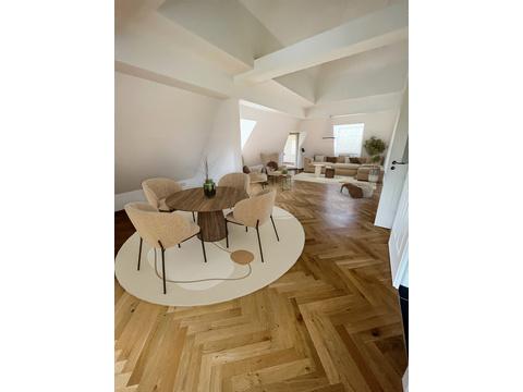 - edles Holzparkett mit Fischgrätmuster in den Wohnräumen