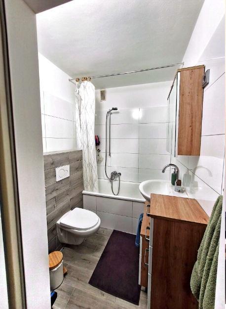 Die Küche ist von 2024, quasi neu. Der Tresen sowie die Hocker gehören mit zum Angebot der Küche. Die Küche wird vom ehemaligen Mieter (2500 VB) abgekauft. Mit dazu gehören die Flaschirmhaube, das Ceran-Kochfeld und der Hochbau-Backofen.