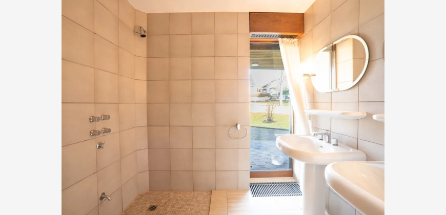 Die geräumige Wohnküche grenzt an das Esszimmer an, während ein weiteres Zimmer im Erdgeschoss als Schlaf-, Arbeits- oder Gästezimmer genutzt werden kann. Ein Duschbad mit Tageslicht rundet das Erdgeschoss ab. Ein besonderes Highlight ist der direkte Zugang von der Doppelgarage ins Haus.
