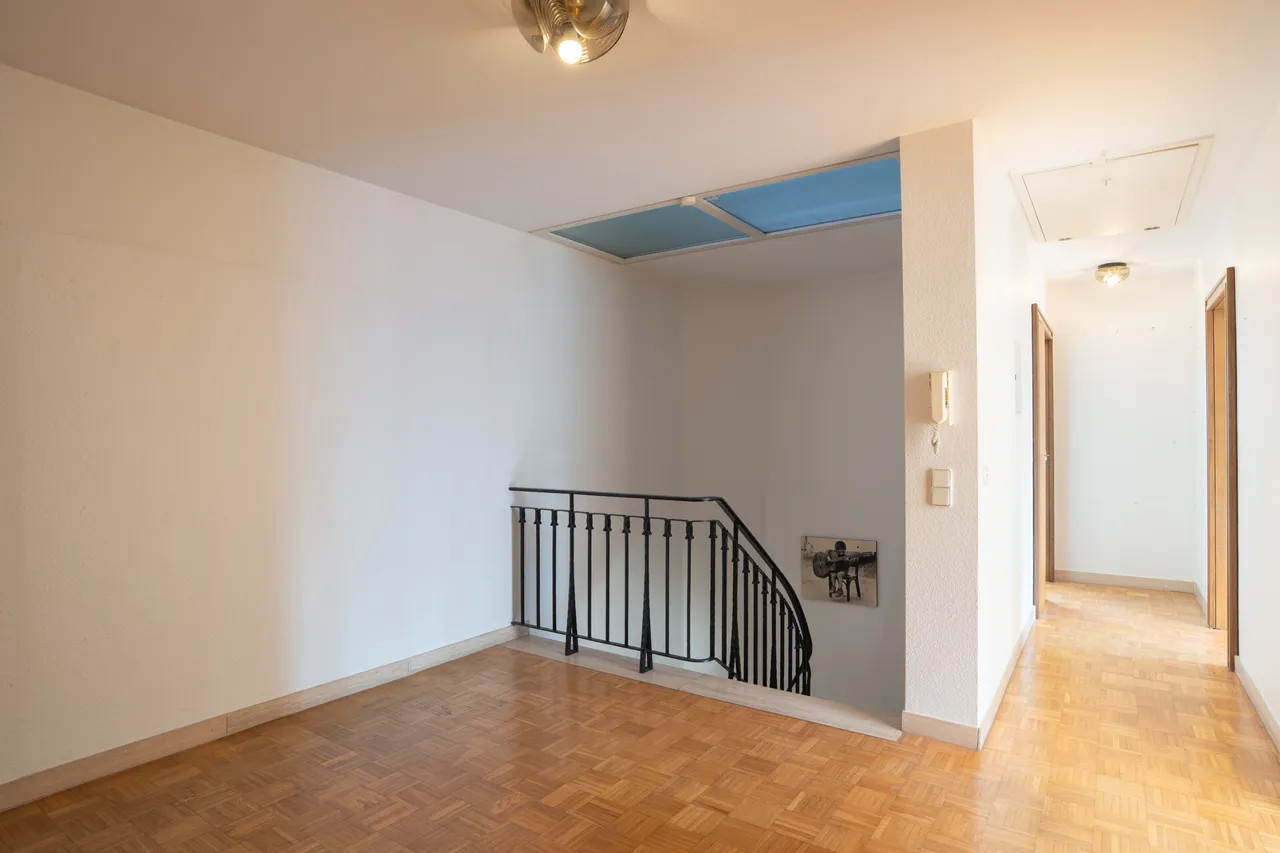 Hervorzuheben ist das Ausbaupotenzial der Dachspitze, das Ihnen weitere Gestaltungsfreiheit bieten könnte. Insgesamt muss man festhalten, dass bei der damaligen Erstellung der Immobilie sehr hochwertige Materialen sowohl im Innenausbau sowie bei dem Gebäude selbst, verwendet worden sind. Die Immobilie präsentiert sich in einem sehr gepflegten Zustand und bietet Raum für Anpassungen an heutige Ansprüche.