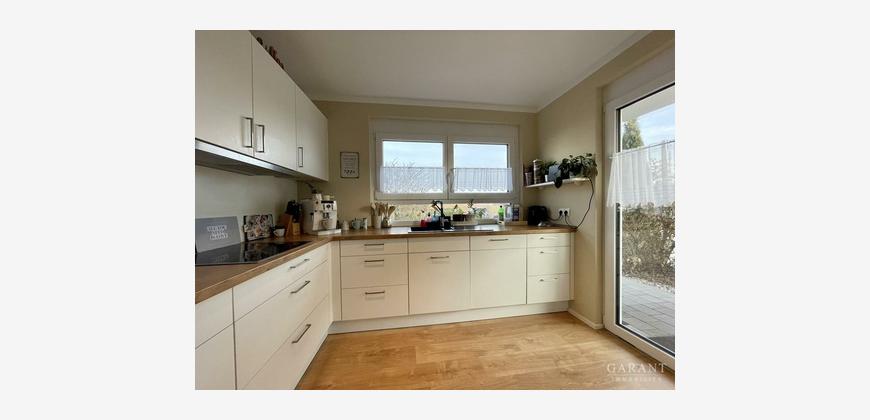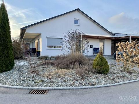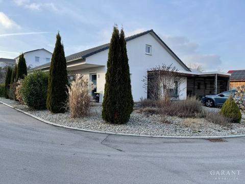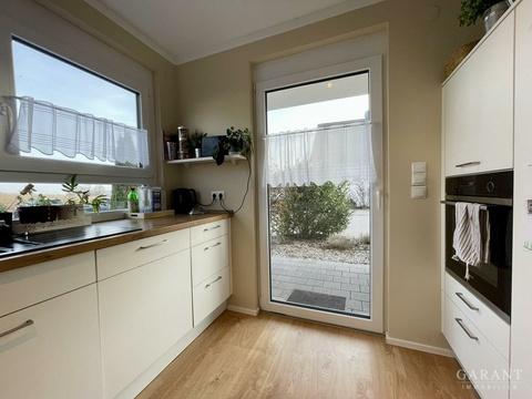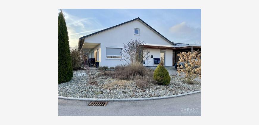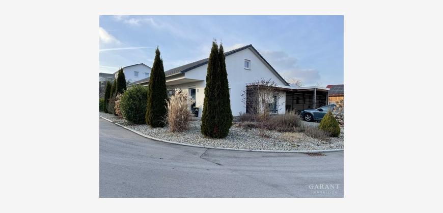 Dieses freistehende Einfamilienhaus mit klassischem Satteldach, errichtet im Jahr 2018 in moderner Holzständerkonstruktion, steht zum Kauf bereit. Das eingeschossige Fertighaus überzeugt durch eine durchdachte Raumaufteilung und zeitgemäßen Wohnkomfort auf einer Ebene. Herzstück ist der großzügige, offen gestaltete Wohn-, Ess- und Küchenbereich mit direktem Zugang zur Terrasse. Direkt an die Küche angeschlossen befindet sich ein praktischer Abstellraum (Speis), der zusätzlichen Stauraum bietet.