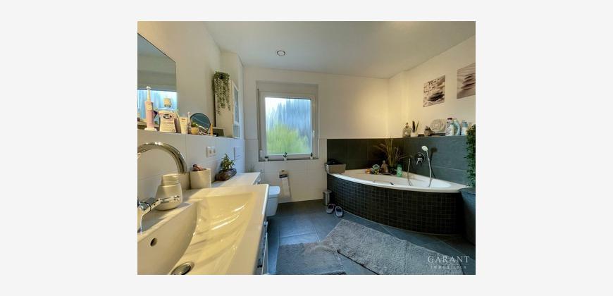 Ergänzt wird das Raumangebot durch ein Schlafzimmer, ein Kinderzimmer, ein Gästezimmer sowie ein Gästebadezimmer mit Dusche. Das Hauptbadezimmer ist komfortabel ausgestattet und verfügt sowohl über eine Eckbadewanne als auch über eine separate Dusche. Ein Technikraum mit Heizungsanlage ist ebenfalls vorhanden.