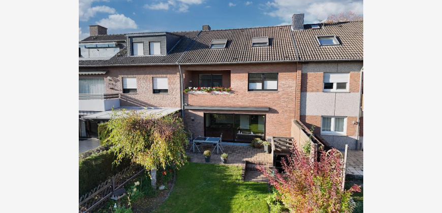 Raumwunder im Neusser Süden! Hier wohnen Sie im Haus der vielen Möglichkeiten! Das Wochenende, den Feierabend auf der sonnigen Terrasse genießen - in ruhiger Lage im Ort nur wenige Minuten von guter Infrastruktur entfernt - das zählt! Hier bietet sich die einmalige Chance zum Erwerb eines wirklich zeitgemäßen Hauses mit viel Platz zum fairen Preis-Leistungsverhältnis. Massiv gebautes 8 Meter breites Reihenhaus, dass hervorragend auch von einer großen Familie genutzt werden kann. Im Erdgeschoss befindet sich ein großzügiger Wohn-und Essbereich mit Kaminofen und Panoramablick auf das schöne Grundstück. Im Obergeschoss sind drei helle große Schlaf- oder Kinderzimmer und ein schönes Bad, dass bereits modernisiert wurde. Ein Highlight des Hauses sind die vielen Nutzflächen wie z.B. die ausgebaute Fläche (ca. 45m²) im Dachgeschoss mit drei weiteren Zimmern und Duschbad, ideal für Home-Office, Büro, Gäste etc. sowie der große Kellerbereich (ca. 60m²) für Hobby, Fitness, Werkstatt etc.