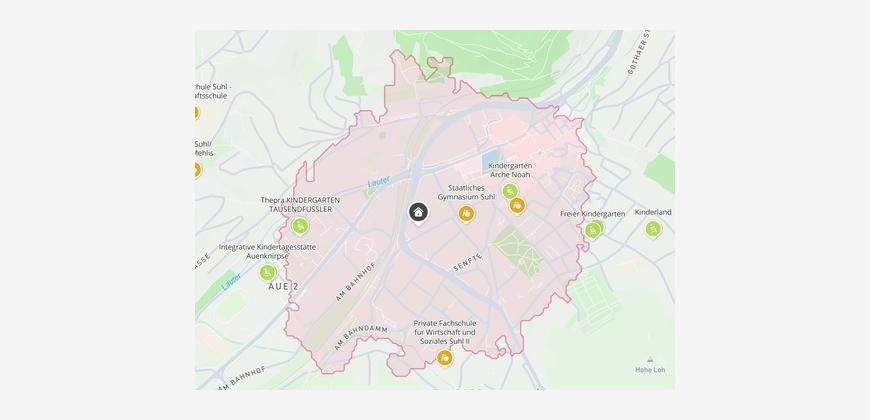 Diese neuwertige Wohn- und Geschäftshaus befindet sich in zentrumsnaher Lage von Suhl – nur etwa 400 Meter vom Stadtzentrum entfernt. Hier profitieren Sie von kurzen Wegen und einer hervorragenden Infrastruktur, die besonders für Familien ideal ist.