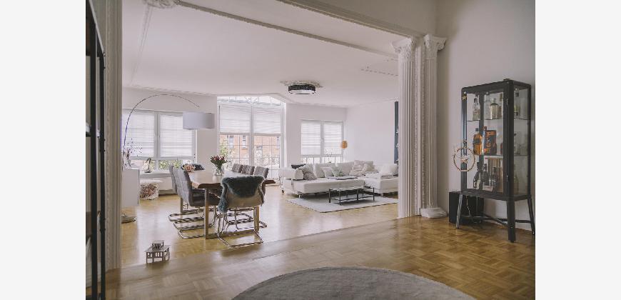- Hohe Decken mit klassischem Stuck