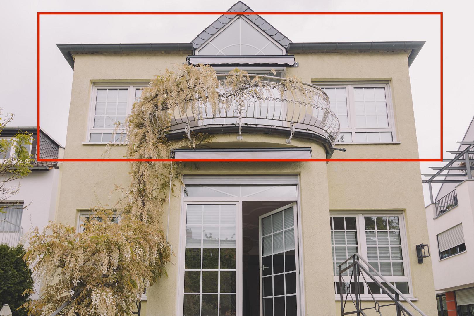 - Drei Balkone mit Blick in den Hinterhof/Garten oder auf die Kinzig
