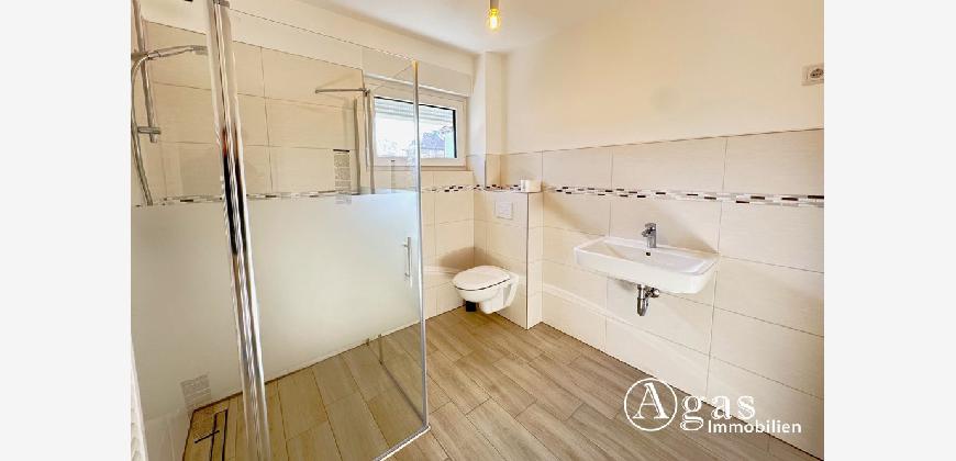 Das vollständig geflieste Badezimmer überzeugt durch seine ebenerdige Dusche und die moderne, hochwertige Ausstattung, die Komfort und Stil vereint.