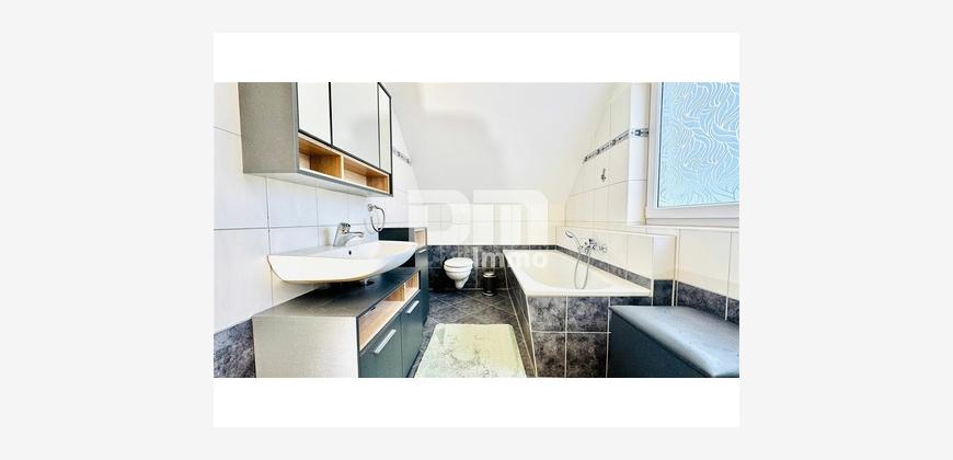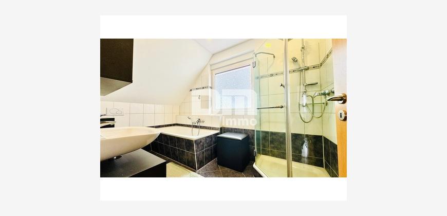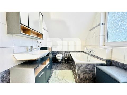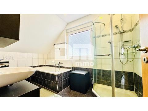 Das Tageslichtbad ist sowohl mit einer Badewanne als auch mit einer separaten Dusche ausgestattet.