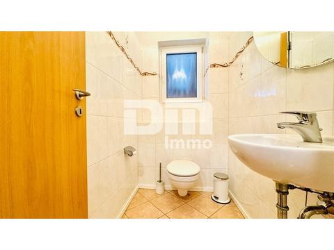 Zusätzlich im EG finden sich ein Gäste-WC, ein praktischer Hauswirtschafts-/Anschlussraum sowie eine repräsentative Diele mit einer hochwertigen Echtholztreppe in Leichtbauweise.