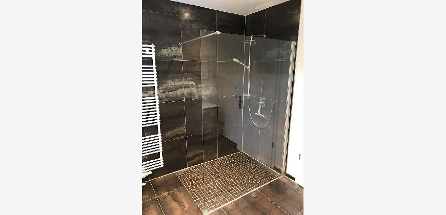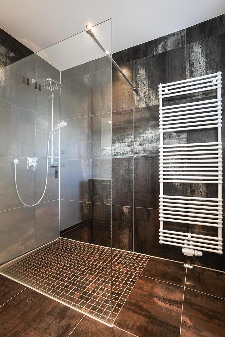 - Traumhaftes Duschbad mit modernen großen Fliesen und Tageslicht Fenster