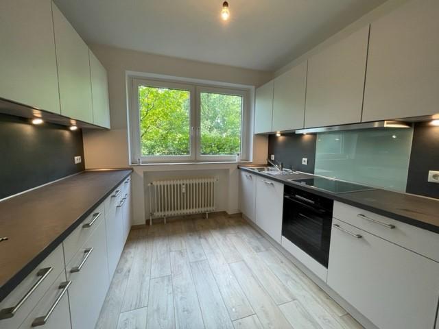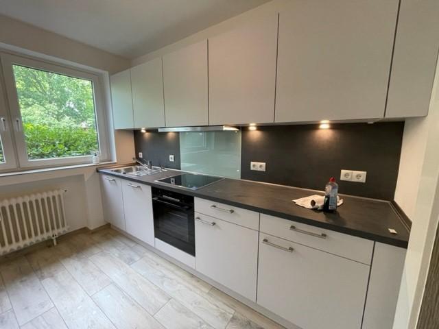 Zur Ausstattung gehört eine neue ( Bj 2023) moderne Einbauküche mit Kühlschrank, Geschirrspüler, Abzugshaube und Einbauherd mit Cerankochfeld und Backofen.