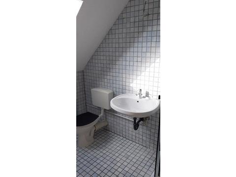 Das Tageslichtbad ist mit Dusche, Waschbecken und WC ausgestattet.