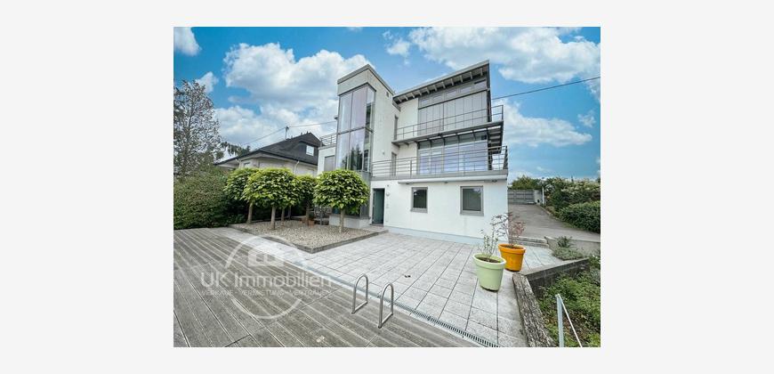 VORANKÜNDIGUNG! Ein Architektenhaus wie kein zweites: Am ruhigen Feldrand, mit freiem Blick bis zum Taunus, öffnet sich dieses Einfamilienhaus-Unikat mit Einliegerwohnung. Ein Rückzugsort für Familien, die Weite, Ruhe und Wertigkeit schätzen. Schon beim Ankommen spürt man die Großzügigkeit: die Zufahrt mit elektrischem Tor, die hausinterne XXL-Garage, der direkte Zugang ins Haus. Komfortabel, diskret und wettergeschützt.