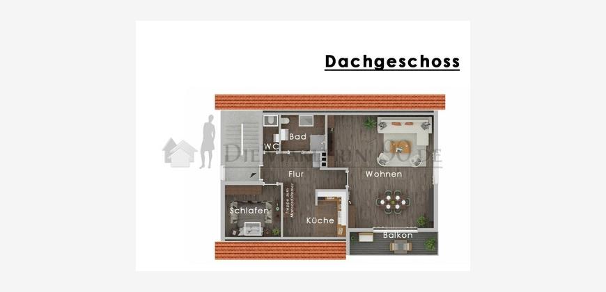 Frisch renovierte Maisonette/Mansardenwohnung über 2 Etagen. Sehr stylisch sind die Fliesen in den Bädern und der Fliesenspiegel im Küchenbereich (ohne Einbauküche). Kuschelig ist das helle Mansardenzimmer unter dem Dach.