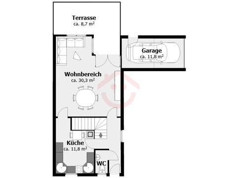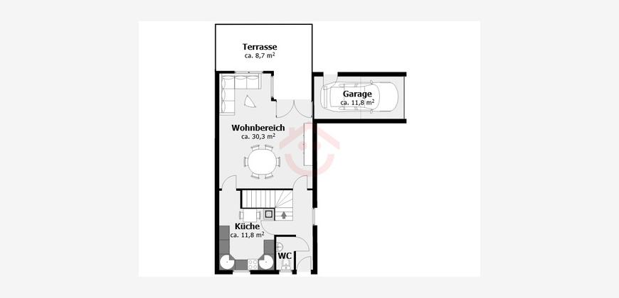 Ihr Auto steht sicher in der eigenen Garage mit elektrischem Tor. Besonders komfortabel: Durch den direkten Zugang gelangen Sie von der Garage durch den Garten ins Haus. Einkäufe tragen Sie so immer trockenen Fußes in die Küche. Der Garten ist pflegeleicht angelegt, perfekt zum Grillen, ohne dass Sie das ganze Wochenende mit Gärtnern verbringen müssen.