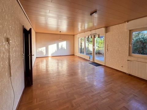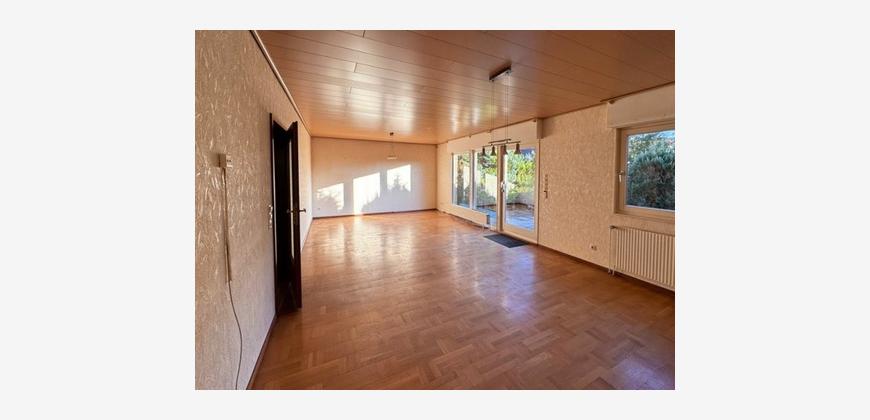 Das großzügige Wohnzimmer mit ca. 36m² hat einen Zugang auf die ca. 18 m² große Terrasse an der Südseite des Hauses. Die Terrasse ist mit einer Markise und einem Grillkamin ausgestattet.