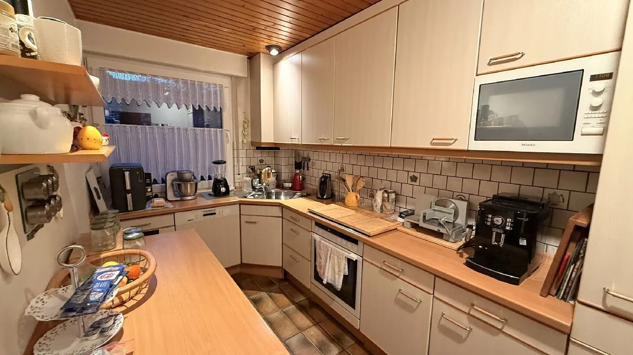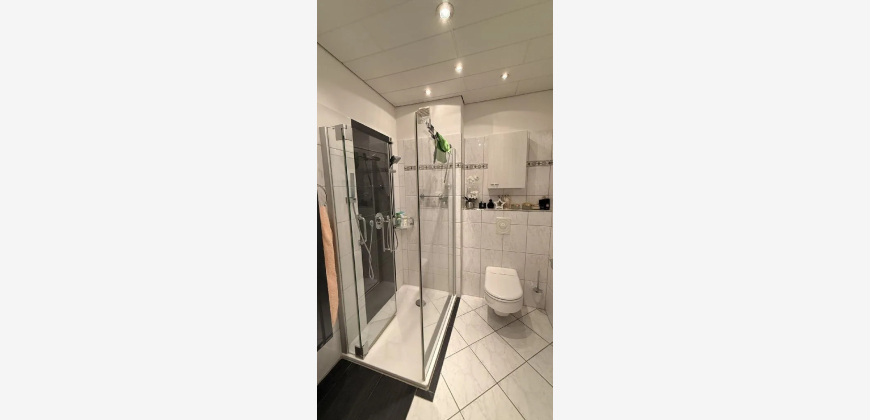 Elektrofußbodenheizung, teilweise Fliesenfußbodenoberbelag, Kunststofffenster mit Isolierverglasung, helles schallisoliertes Zimmer (ehem. Musiker) mit Eckfenstern, Einbauschränke, überwiegend Rolllä-den, große, fast ebenerdige Dusche mit Echtglasabtrennung, teilweise Glasfasertapete, Balkon, Aufzug, Garage mit Sektionaltor.