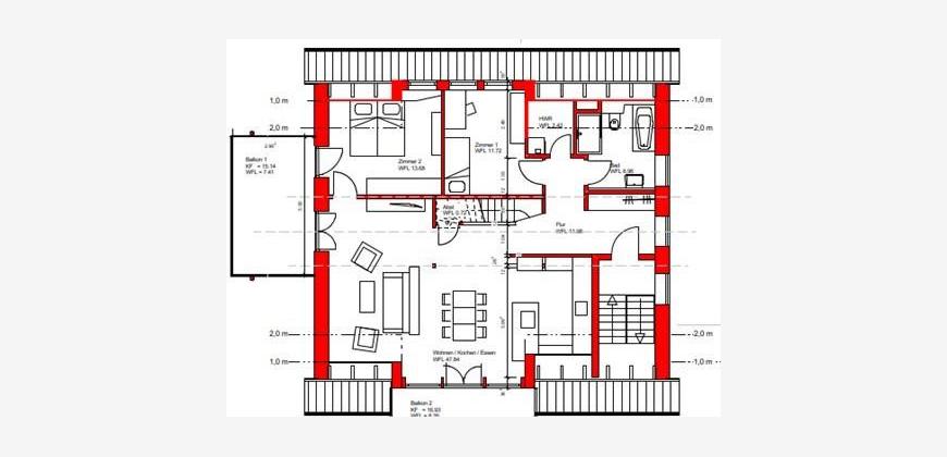 Bodentiefe Fensterelemente sorgen für lichtdurchflutete Räume. Viele Ausstattungsdetails wie Fußboden- und Infrarotheizung, sowie Bäder in zeitlosem Design mit vielen Annehmlichkeiten schaffen ein ganz besonderes Gefühl an Wohnkomfort.