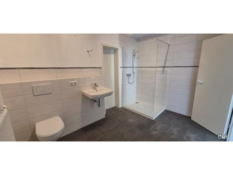 Deweiteren gibt es hier ein großes Schlafzimmer, die Küche und ein großes Wohnzimmer. Das Badezimmer wurde erst Anfang 2025 komplett neu installiert, ausgestattet mit grosser barrierefreier Dusche. Der Waschmaschinenanschluss ist sich gleich eine Tür weiter in einem sep Abstell- / Vorratsraum, in dem sich auch die eigene Gastherme (Bj 2007) befindet.