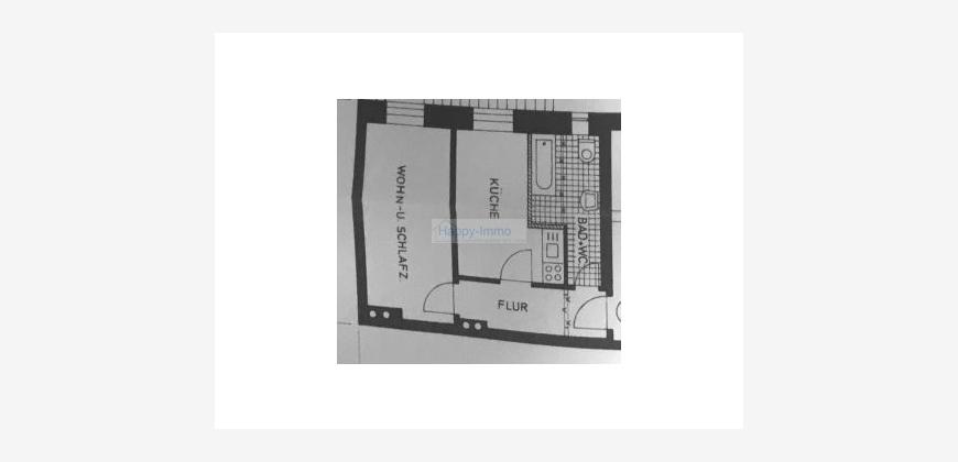 Zum Appartement gehört ein Wohn-/Schlafzimmer, ein Flur mit Platz für die Garderobe des Mieters auch eine großzügige Küche mit Fenster sowie ein Bad mit Fenster.