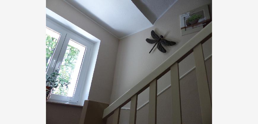 Hochwertig ausgestattet. Alle Räume von der Diele aus erreichbar. Der große Garten sowie der angrenzende Wald sorgen für einen hohen Freizeitwert. Zur Wohnung gehört ein großer, geräumiger Kellerraum. Eine Gemeinschafts-Waschküche ist mit eigenen Waschmaschinen-