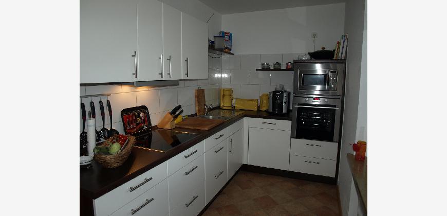 Marken-EBK mit Auszügen und integrierten Marken-Elektro-Geräten (Geschirrspüler, Backofen, Mikrowelle, Ceranfeld autark., im Mietpreis enthalten, jedoch ohne Kühlschrank.