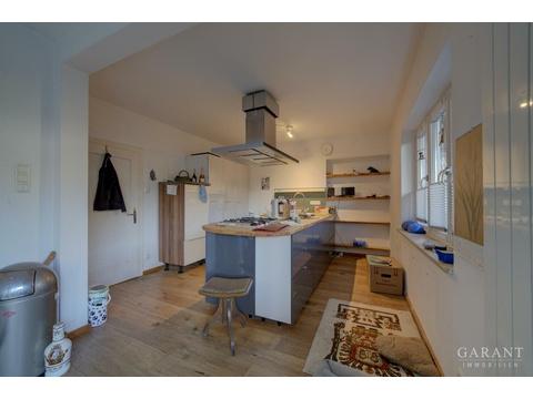 Das Haus wurde 1994 umfassend umgebaut und in den letzten Jahren substantiell modernisiert. Rund 250.000,- Euro flossen unter anderem in neue Fenster (2006), eine Gaszentralheizung mit Solarthermie (2019), einen neuen Dachaufbau mit 30 cm Dämmung und zwei großen Gauben (2017-2019), die Fassadenerneuerung (2018), den Ausbau des Dachstudios (2020) sowie die Terrassenerweiterung (2022).