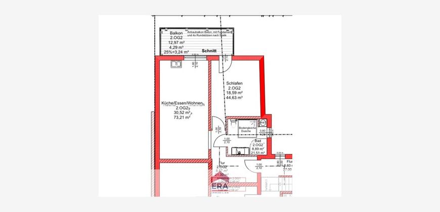 Die Wohnung ist mit hochwertigen Feinsteinfliesen ausgestattet.