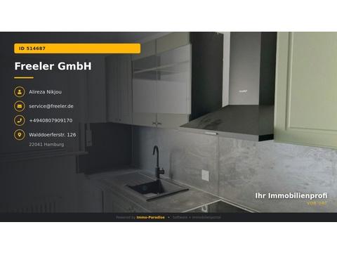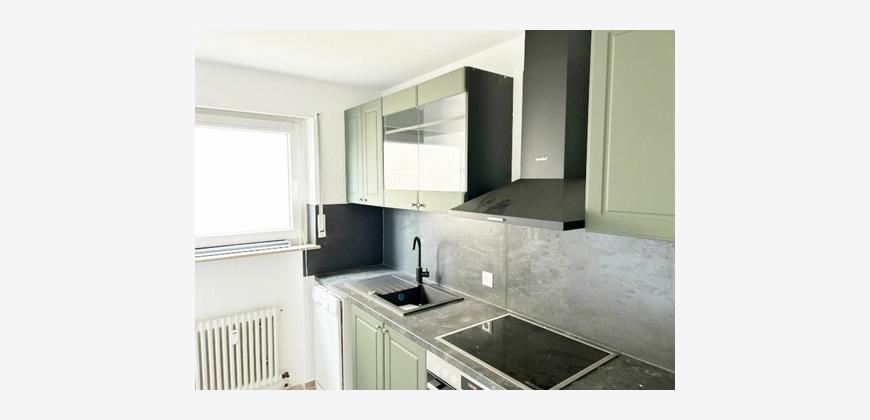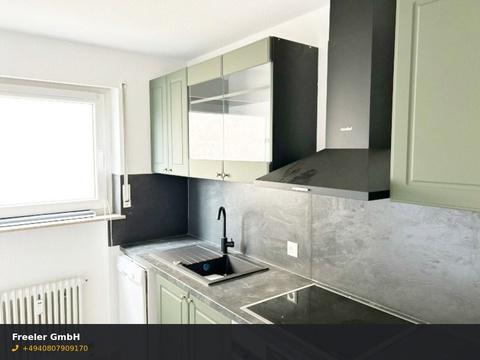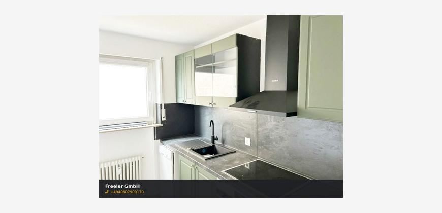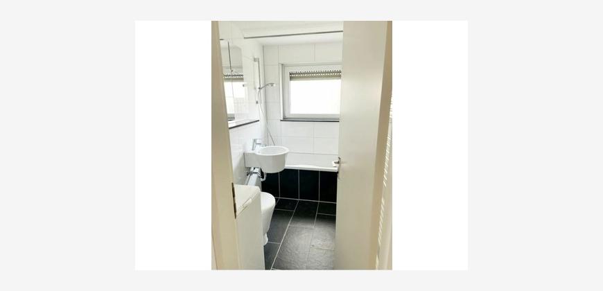 Die Wohnung befindet sich im 1. Obergeschoss einer kleinen gepflegten Wohnanlage. Der Fußboden im Wohnbereich ist mit Laminat verlegt. In der Küche befindet sich eine Einbauküche mit E-Herd, Geschirspühler und ein Kühlschrank und ein Waschmaschinenanschluss. Die Wohnung hat ein Vollbad, welches mit hellen, Fließen ausgestattet ist. Zu der Wohnung gehört ein kleiner praktischer Kellerraum, der genügend Stauraum bietet.