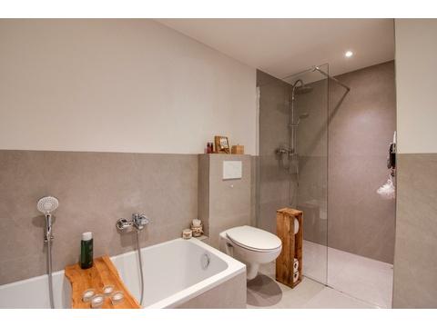 • modernes Bad mit Dusche, Wanne & Fußbodenheizung
