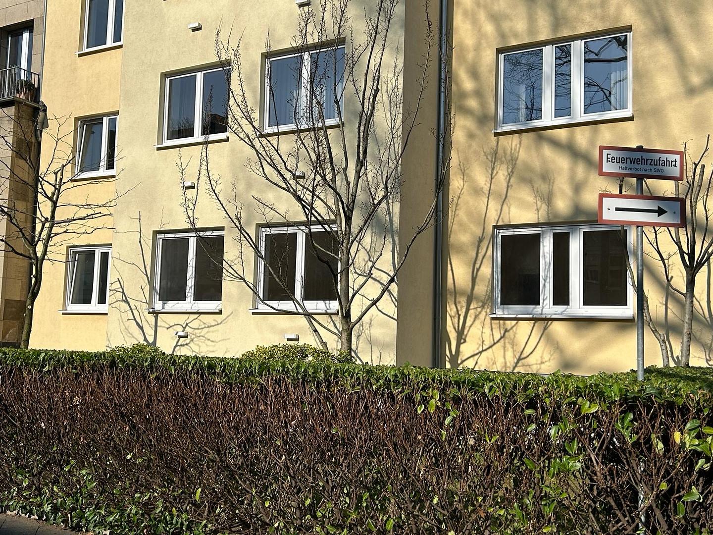 Das Gebäude liegt in einer Einbahnstrasse direkt am Schillerplatz in Düsseldorf-Düsseltal