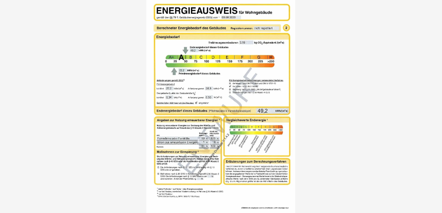 Endenergiebedarf Wärme: 49 kWh/(m²a) inklusive Warmwasser