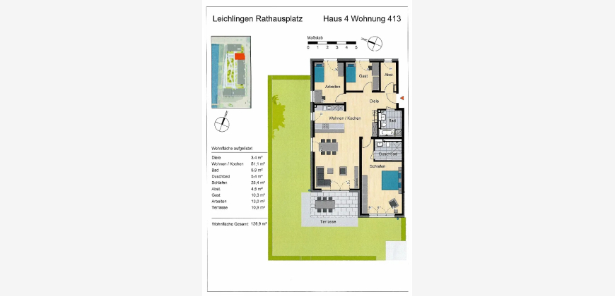 Auf rund 130 m² Wohnfläche erwartet Sie ein großzügiger Wohn-, Ess- und Kochbereich von ca. 51 m², der viel Raum für individuelle Wohnideen bietet. Die moderne, offene Küche ist harmonisch in den Wohnraum integriert. Von hier aus gelangen Sie auf die sonnige Terrasse mit eigenem Gartenanteil ein perfekter Ort zum Entspannen oder für gesellige Stunden im Freien.