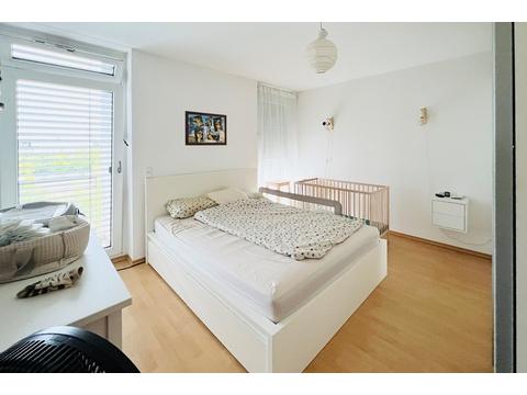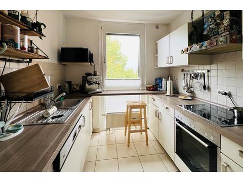 Der großzügige Wohn- und Essbereich mit Zugang zum Balkon überzeugt durch große Fensterfronten, die den Raum mit viel Tageslicht durchfluten und ein besonders freundliches Wohnambiente schaffen. Die moderne Einbauküche ist bereits integriert und bietet alle Annehmlichkeiten des täglichen Bedarfs. Das Tageslichtbad ist mit Dusche und Wanne ausgestattet und sorgt so für besonderen Komfort. Zusätzlich steht ein separates Gäste-WC zur Verfügung. Das lichtdurchflutete Schlafzimmer bietet einen idealen Rückzugsort.