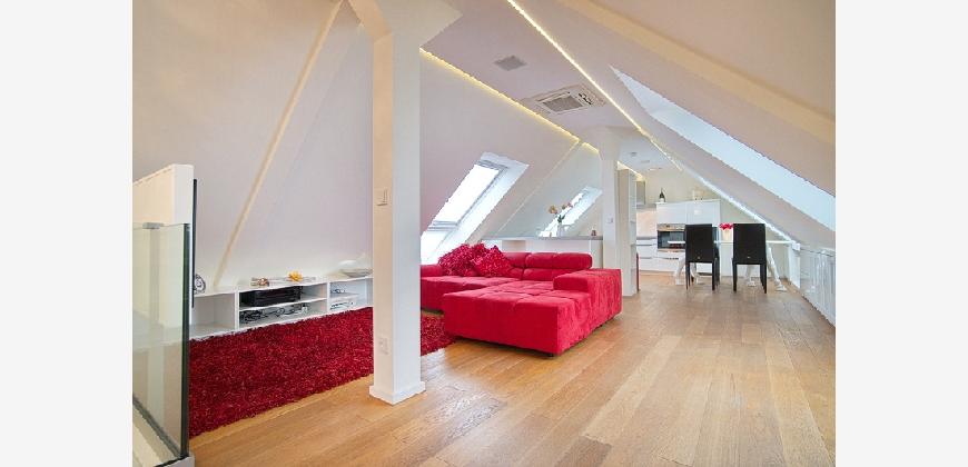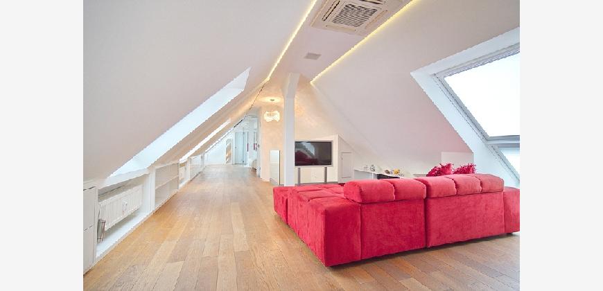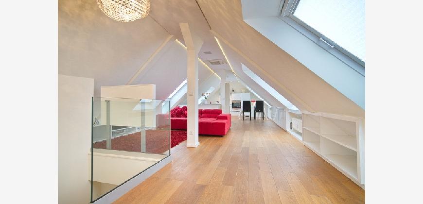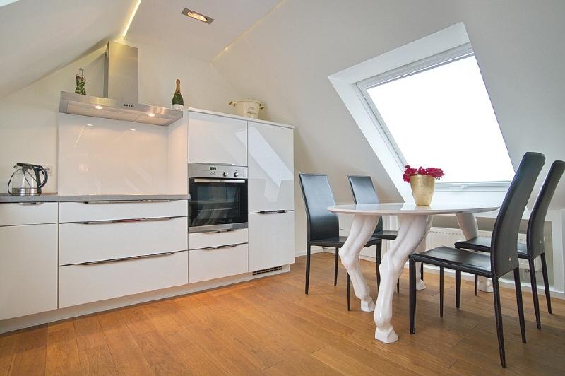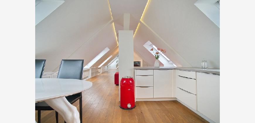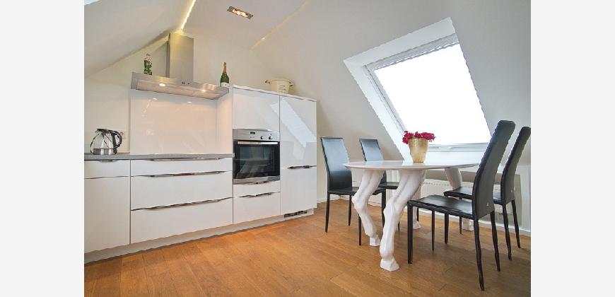 Studio-Etage in attraktiver zentraler Lage von Essen, in Laufnähe zum Isenbergviertel, Rüttenscheid und zum Hauptbahnhof. Die Wohnung liegt im 4. OG eines Mehrfamilienhauses, Nichtraucher-Angebot. Eine Klimaanlage ist vorhanden, das Haus hat eine Gegensprechanlage. Die Miete beinhaltet bereits die Betriebs- und Heizkosten, der Strom ist separat zu zahlen. Internetnutzung über W-LAN ist für € 20 pro Monat möglich. Ein Energieausweis liegt vermieterseits noch nicht vor, ist jedoch angefragt. Ausgefallene und stimmige Gestaltung - ein Unikat. Die Wohnräume erstrecken sich über die gesamte Etage und sind offen gehalten, Bodenbelag: Dielen-Parkett. Wohnbereich mit großer Relax-Sofaecke und Philips-Flatscreen, Essbereich mit Glastisch und vier Stühlen, weiße Einbauküche mit Arbeitsplatte in Beton-Optik. Kombigerät Waschmaschine / Trockner, Spülmaschine, Neff-Kochfeld und ein Backofen in Körperhöhe sowie Kühlschrank und Gefrierschrank stehen zur Verfügung. Der Schlafbereich ist mit einem Doppelbett plus in der Dachschräge eingebautem Bildschirm ausgestattet, die Dusche/Rainshower mit Glastrennwänden integriert. Schönes Design-Waschbecken, die Einbaumöbel daneben bieten viel Stauraum. Separate Toilette mit Waschbecken und Fenster. An den Schlafbereich schließt sich eine gut ausgestattete, begehbare Ankleide mit Milchglas-Schiebetüre an. Die Fenster sind mit Velux-Rolläden und Plissées versehen.