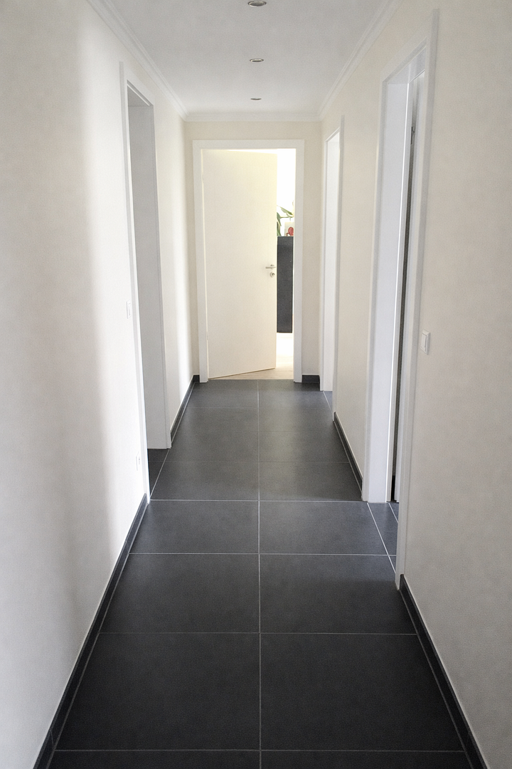 Böden: Grossformatige Fliesen und Echtholzparkett
