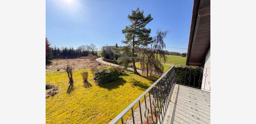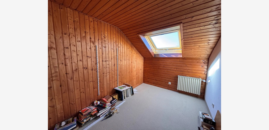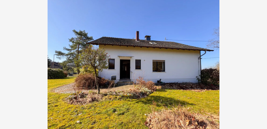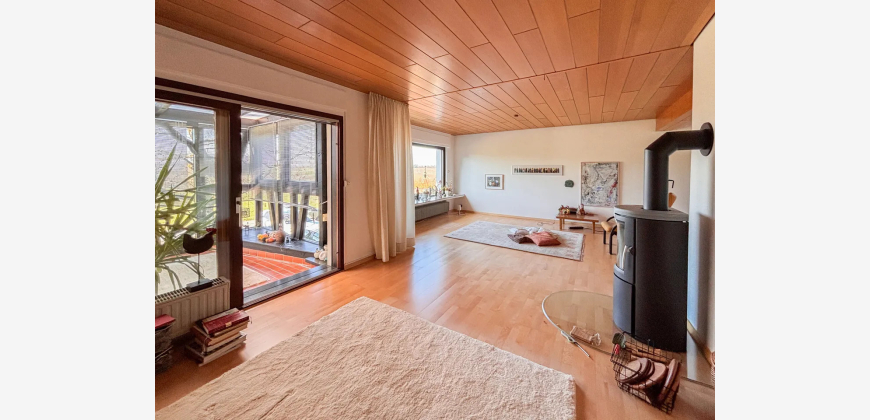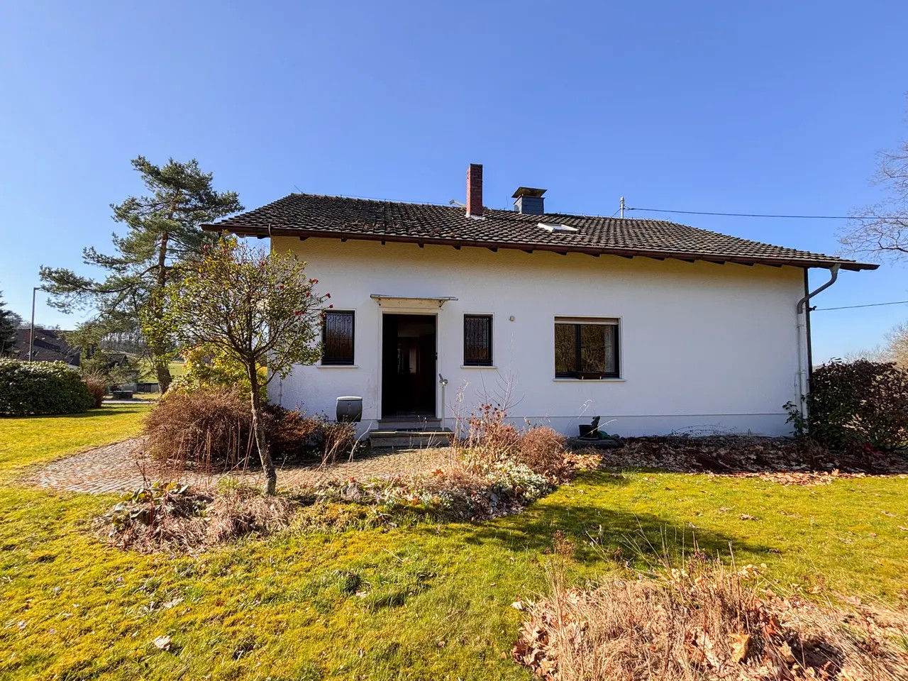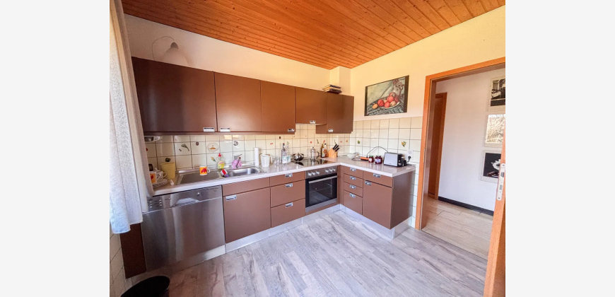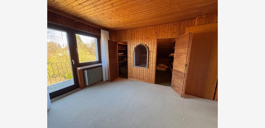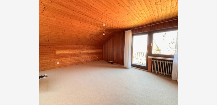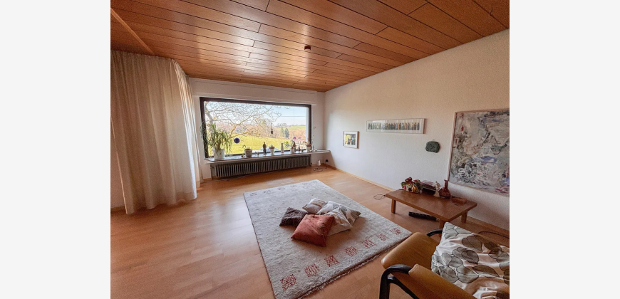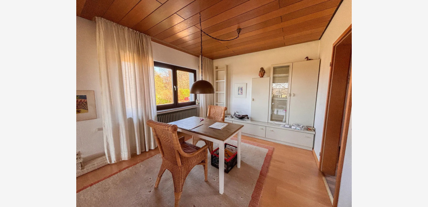 Dieses massiv erbaute und gepflegte Einfamilienhaus aus dem Jahr 1966 bietet auf zwei Etagen eine Wohnfläche von ca. 113 m². Das großzügige Grundstück mit etwa 3.964 m² teilt sich in 2 Flurstücke auf und eröffnet zahlreiche Möglichkeiten zur individuellen Gestaltung und lädt mit seiner herrlichen Aussicht zum Verweilen ein. Im Erdgeschoss erwartet Sie ein durchdachter Grundriss mit einem Gäste-WC, einem Badezimmer sowie einem Arbeitszimmer, individuell als Gästezimmer nutzbar. Das Herzstück dieser Etage bildet der großzügige Wohn- und Essbereich mit Kaminofen. Von hier aus gelangen Sie direkt in den Wintergarten. Ergänzt wird das Erdgeschoss durch eine Küche. Das Dachgeschoss bietet drei Schlafzimmer, ein separates WC und ein Tageslichtbad. Die beiden Schlafzimmer verfügen jeweils über einen eigenen Balkon mit Blick in den Garten, wobei eines der Zimmer zusätzlich mit einer praktischen Ankleide ausgestattet ist. Das Haus ist unterkellert und bietet damit zusätzlichen Stauraum. Hier befinden sich eine gemütliche Kellerbar, eine Waschküche, ein Vorratsraum sowie der Heizungsraum. Zudem besteht ein direkter Zugang zur Garage.