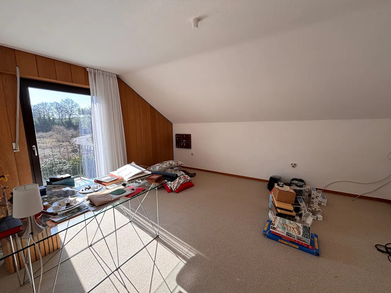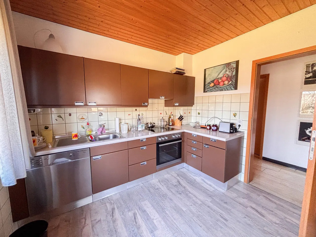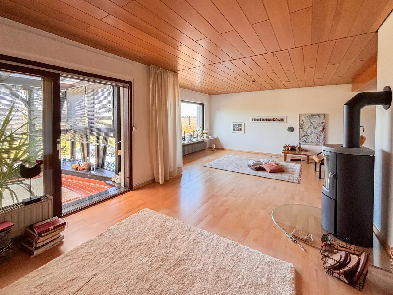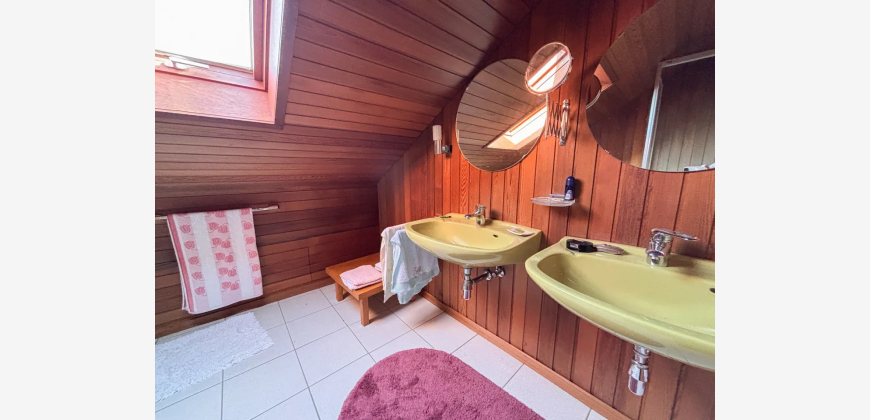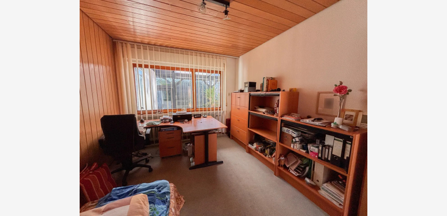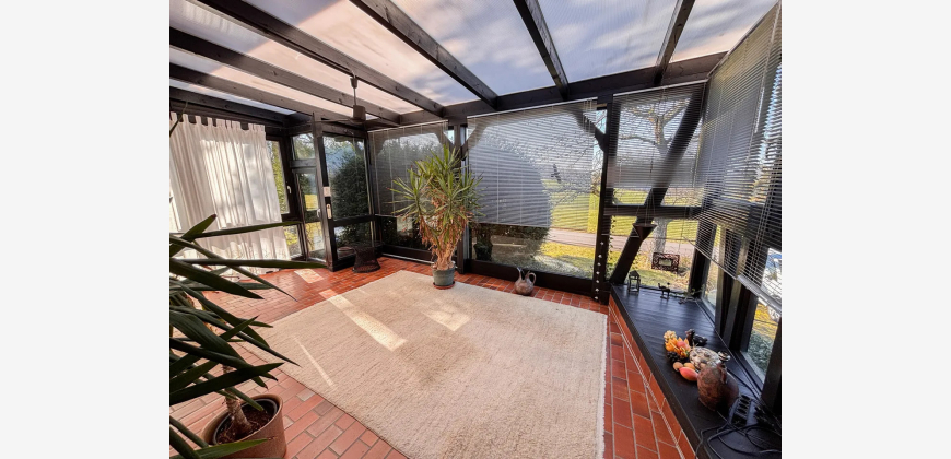 Dieses massiv erbaute und gepflegte Einfamilienhaus aus dem Jahr 1966 bietet auf zwei Etagen eine Wohnfläche von ca. 113 m². Das großzügige Grundstück mit etwa 3.964 m² teilt sich in 2 Flurstücke auf und eröffnet zahlreiche Möglichkeiten zur individuellen Gestaltung und lädt mit seiner herrlichen Aussicht zum Verweilen ein. Im Erdgeschoss erwartet Sie ein durchdachter Grundriss mit einem Gäste-WC, einem Badezimmer sowie einem Arbeitszimmer, individuell als Gästezimmer nutzbar. Das Herzstück dieser Etage bildet der großzügige Wohn- und Essbereich mit Kaminofen. Von hier aus gelangen Sie direkt in den Wintergarten. Ergänzt wird das Erdgeschoss durch eine Küche. Das Dachgeschoss bietet drei Schlafzimmer, ein separates WC und ein Tageslichtbad. Die beiden Schlafzimmer verfügen jeweils über einen eigenen Balkon mit Blick in den Garten, wobei eines der Zimmer zusätzlich mit einer praktischen Ankleide ausgestattet ist. Das Haus ist unterkellert und bietet damit zusätzlichen Stauraum. Hier befinden sich eine gemütliche Kellerbar, eine Waschküche, ein Vorratsraum sowie der Heizungsraum. Zudem besteht ein direkter Zugang zur Garage.