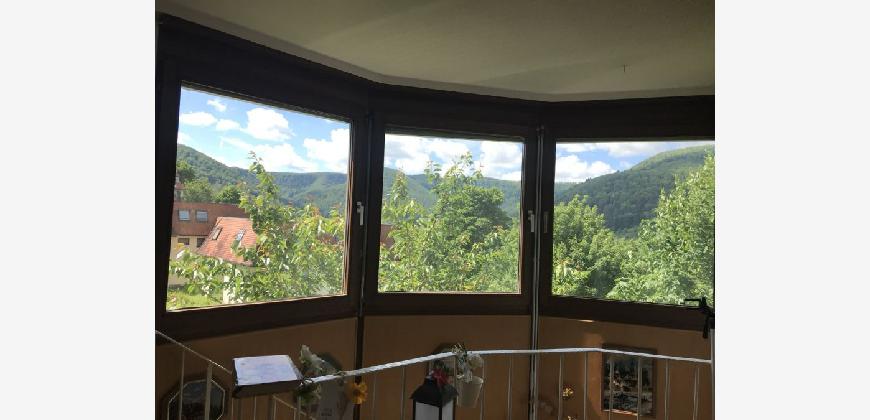 - großzügiger Wohn-Ess-Küchen-Bereich, sehr hell und mit herrlicher Aussicht (Boden Parkett geschliffen 2021, Fliesen in Küche)