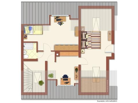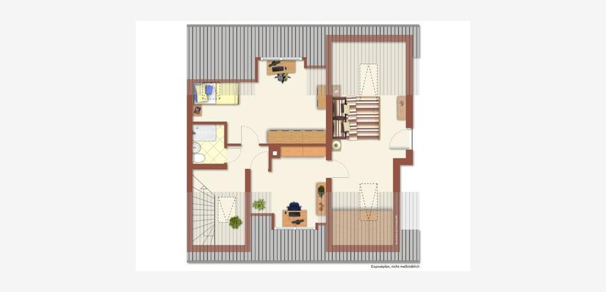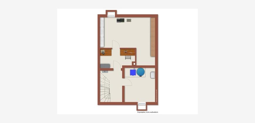 In der angegebenen Wohnfläche sind folgende Flächen wie folgt berücksichtigt: die Terrasse sowie Dachgeschoßflächen zwischen 1 und 2 m Raumhöhe zu 1/2; Bereiche unter 1 m Raumhöhe sowie Kellerräume sind in der Wohnfläche nicht enthalten.