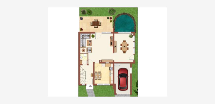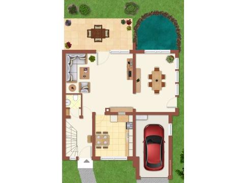 - großer rückwärtiger Garten (ca. 9 m x ca. 14 m) mit Teich sowie großzügiger Vorgarten (ca. 13 m x 9 m)