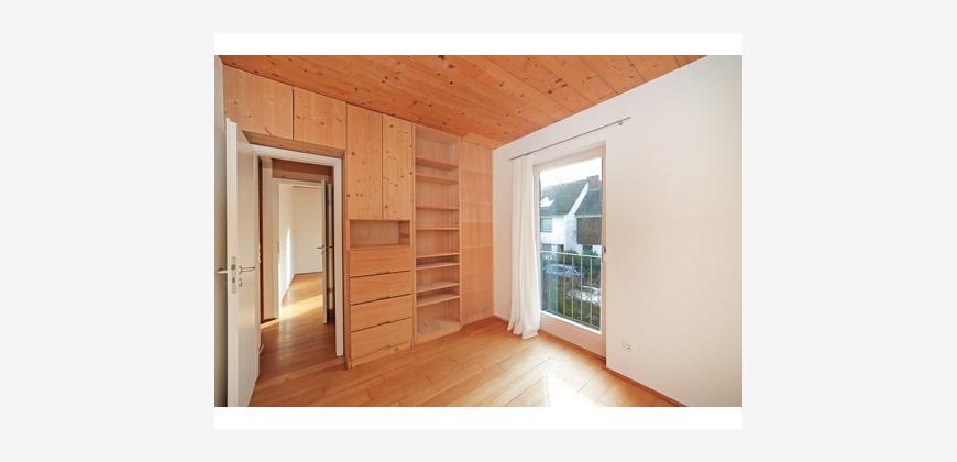 Das große Reiheneckhaus wurde ca. 1960 errichtet und im Jahr 2000 um einen modernen Anbau in hoch wärmedämmender Holzbauweise mit Fokus auf Baubiologie und Energieeffizienz erweitert sowie Teile des Altbaus modernisiert. Das Haus bietet mit ca. 175 m² Wohnfläche, 6 bis 9 Zimmern, Außenmaßen von ca. 9,50 Breite x 9,24 Länge und 366 m² Grundstück sehr viel Platz. Durch die Ausrichtung nach Osten, Süden und Westen ist das Haus ganztägig lichtdurchflutet. Der ursprüngliche Bau mit drei 2-Zimmer-Wohnungen wurde in den 90er-Jahren zum Einfamilienhaus umgestaltet. Dadurch entstand ein individueller Grundriss mit großen Zimmern und vielen Variationsmöglichkeiten.