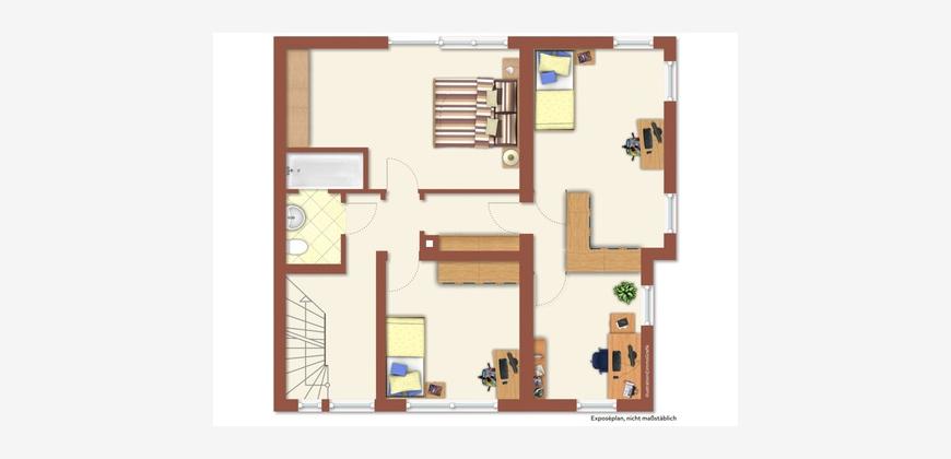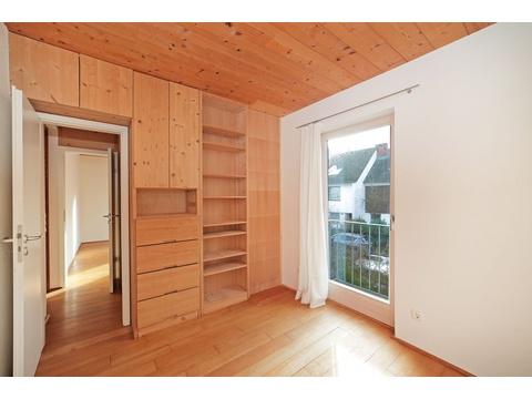 Das große Zimmer im Anbau im 1. OG ist in zwei Zimmer geteilt, wobei die Trennwand durch Schränke erstellt wurde und rückbaubar ist.