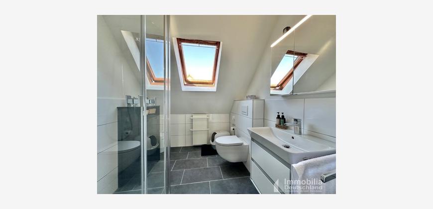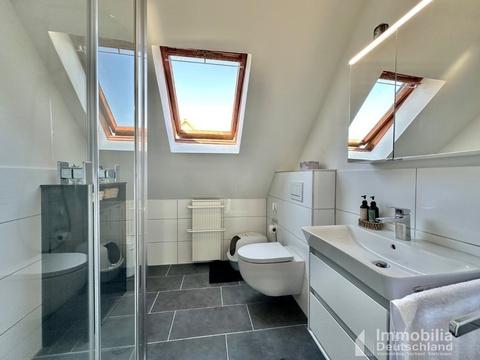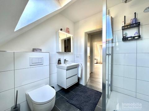 + Geräumiges Badezimmer mit Dusche und Dachfenster