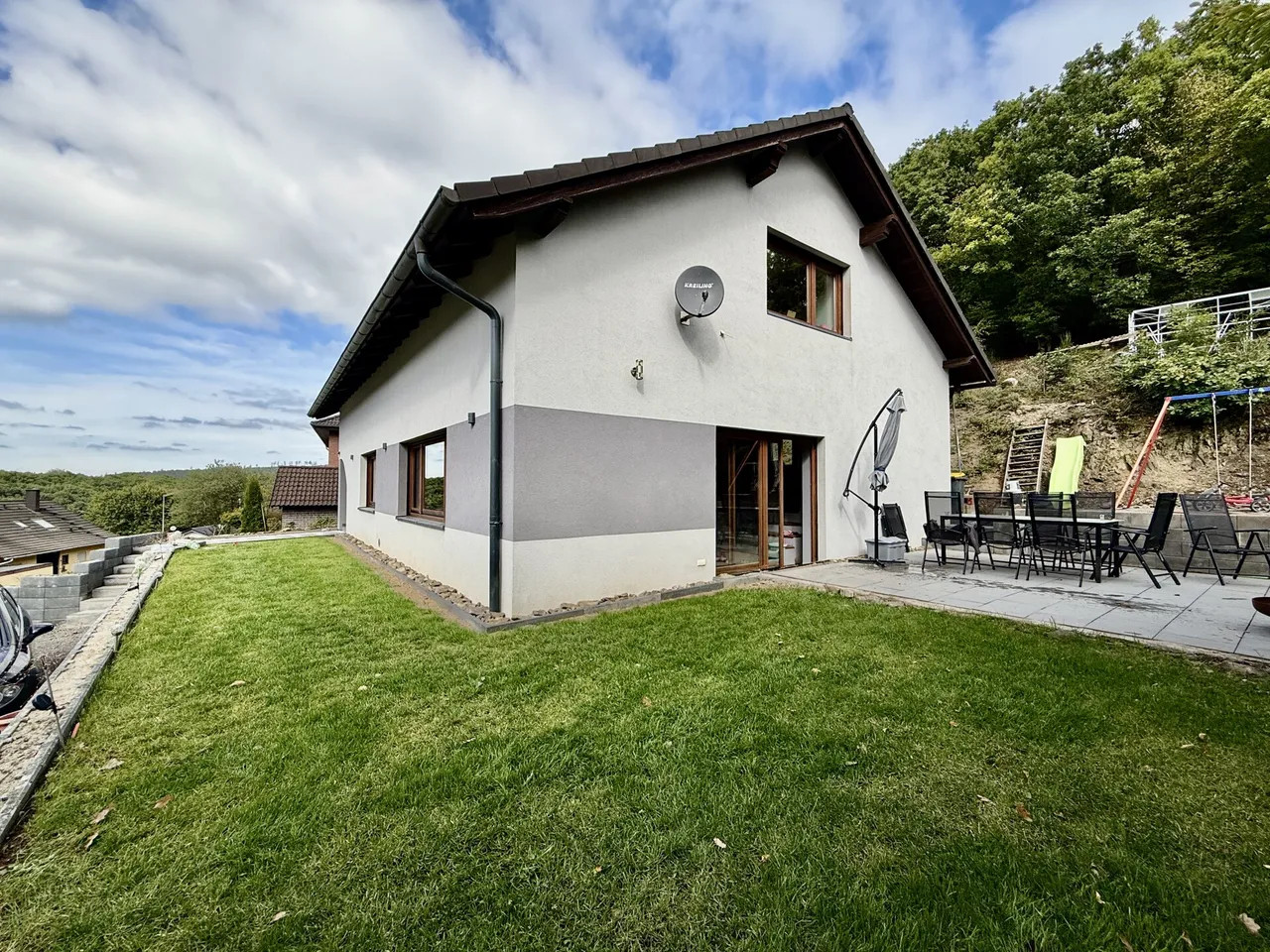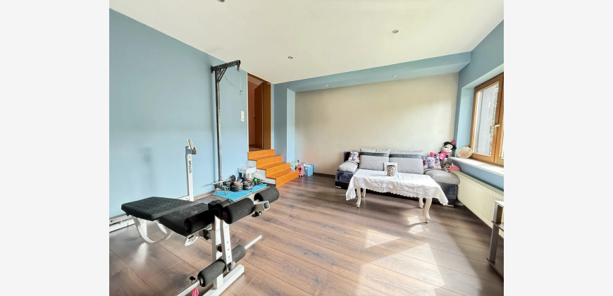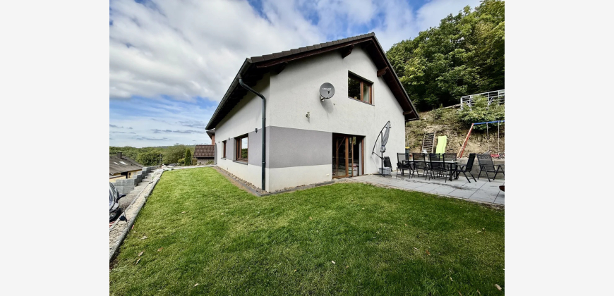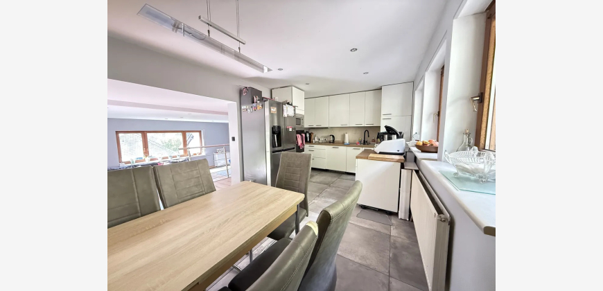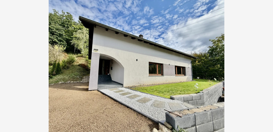 Dieses Einfamilienhaus aus dem Jahr 1988 bietet eine Wohnfläche von ca. 150 m² und wurde im Jahr 2021 umfassend modernisiert. Durch die Renovierungen präsentiert sich die Immobilie in einem gepflegten und zeitgemäßen Zustand und eignet sich ideal für Familien, die ein sofort bezugsfertiges Zuhause suchen. Das Haus verfügt über ein großzügiges Wohnzimmer mit direktem Zugang zur Terrasse, ein Schlafzimmer, zwei Kinderzimmer, die auch als Gästezimmer oder Homeoffice genutzt werden können, sowie zwei moderne Badezimmer. Der Grundriss ist gut geschnitten und sorgt für helle, freundliche Räume. Besondere Ausstattungsmerkmale sind die neue Pelletheizung aus dem Jahr 2021, die ebenfalls 2021 erneuerte Fassadendämmung sowie die im selben Jahr durchgeführte Innenrenovierung. Die Kombination aus solider Bausubstanz und moderner Ausstattung sorgt für ein energieeffizientes und komfortables Wohnerlebnis.