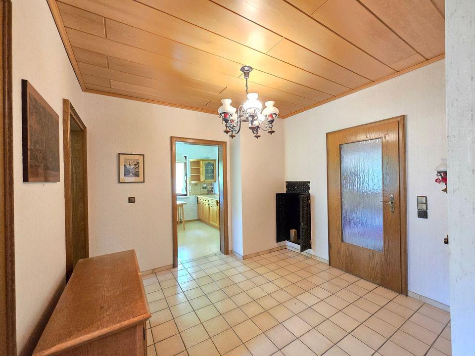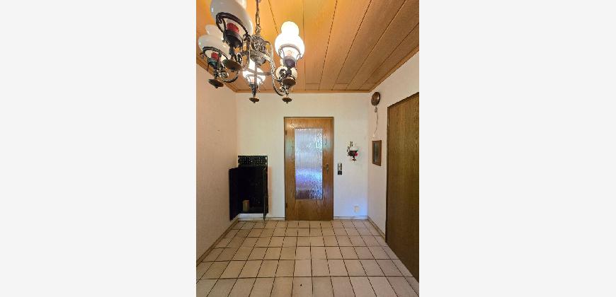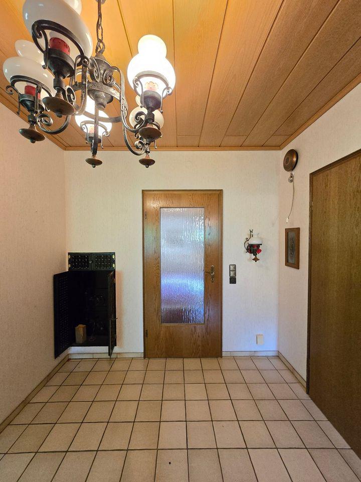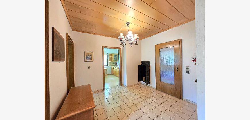Architektur: Der Eingangsbereich und die Terrasse sind nach Südosten ausgerichtet. Über die Diele haben Sie Zugang zur Treppe ins Dachgeschoss und in den Keller. Vom Flur des Erdgeschosses gehen das großzügige Wohnzimmer mit Kachelofen (wird vom Flur aus beheizt), das Schlafzimmer, das Gästezimmer, die Küche, das Badezimmer, das Gäste-WC und die Garderobe ab.