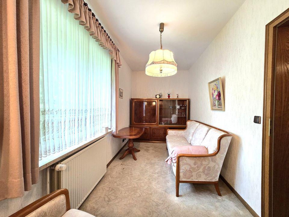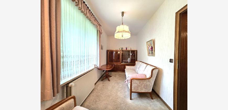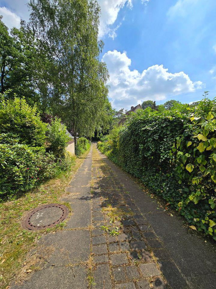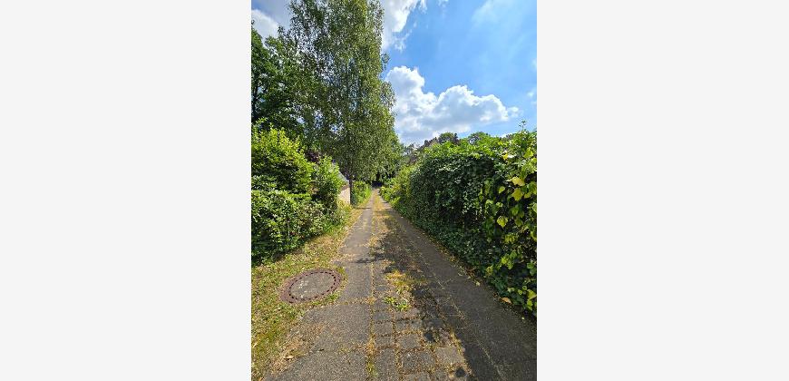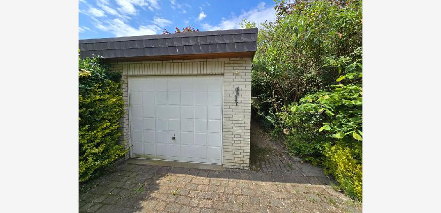 Grundstück und Außenbereich: Das Pfeifenstielgrundstück liegt in zweiter Reihe am Ende einer Sackgasse. Die Zuwegung führt direkt auf die zum Grundstück gehörenden Garage. Parallel zum Kelleraußeneingang könnte der Stellplatz mit einem Carport versehen werden.