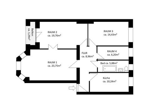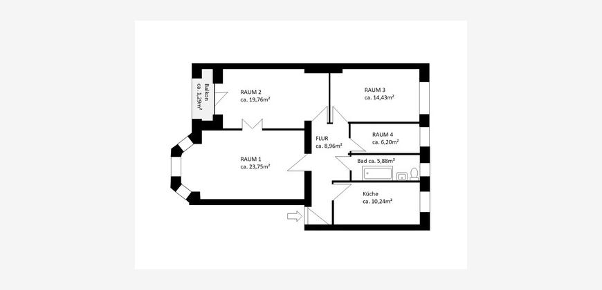 Großzügiges Raumgefühl & smarte Aufteilung: Mit ihren ca. 2,95 m Deckenhöhen und der klugen Grundrisseinteilung bietet die Wohnung ein unvergleichliches Wohngefühl. Alle Räume sind über einen zentralen Flur erschlossen.